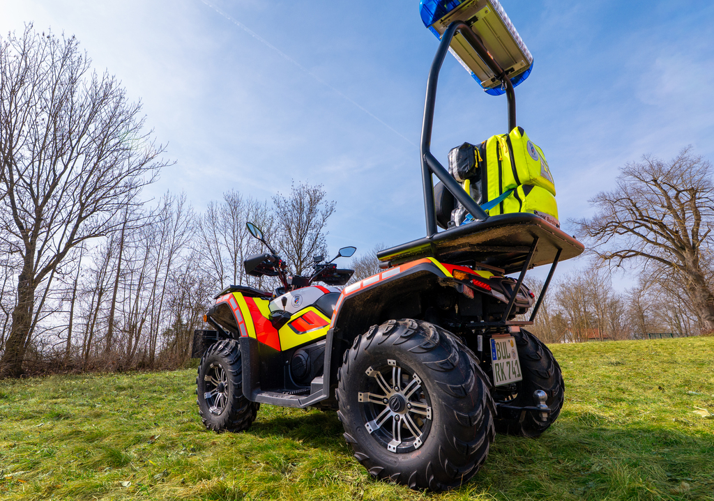Darüber hinaus werden wir über die Einsatzleitung regelmäßig bei Personensuchen, in unübersichtlichem Gelände oder bei besonderen Einsatzlagen nachalarmiert. Damit leisten wir einen wichtigen Beitrag zur schnellen Lokalisierung und Versorgung von Patienten – auch abseits befestigter Wege.